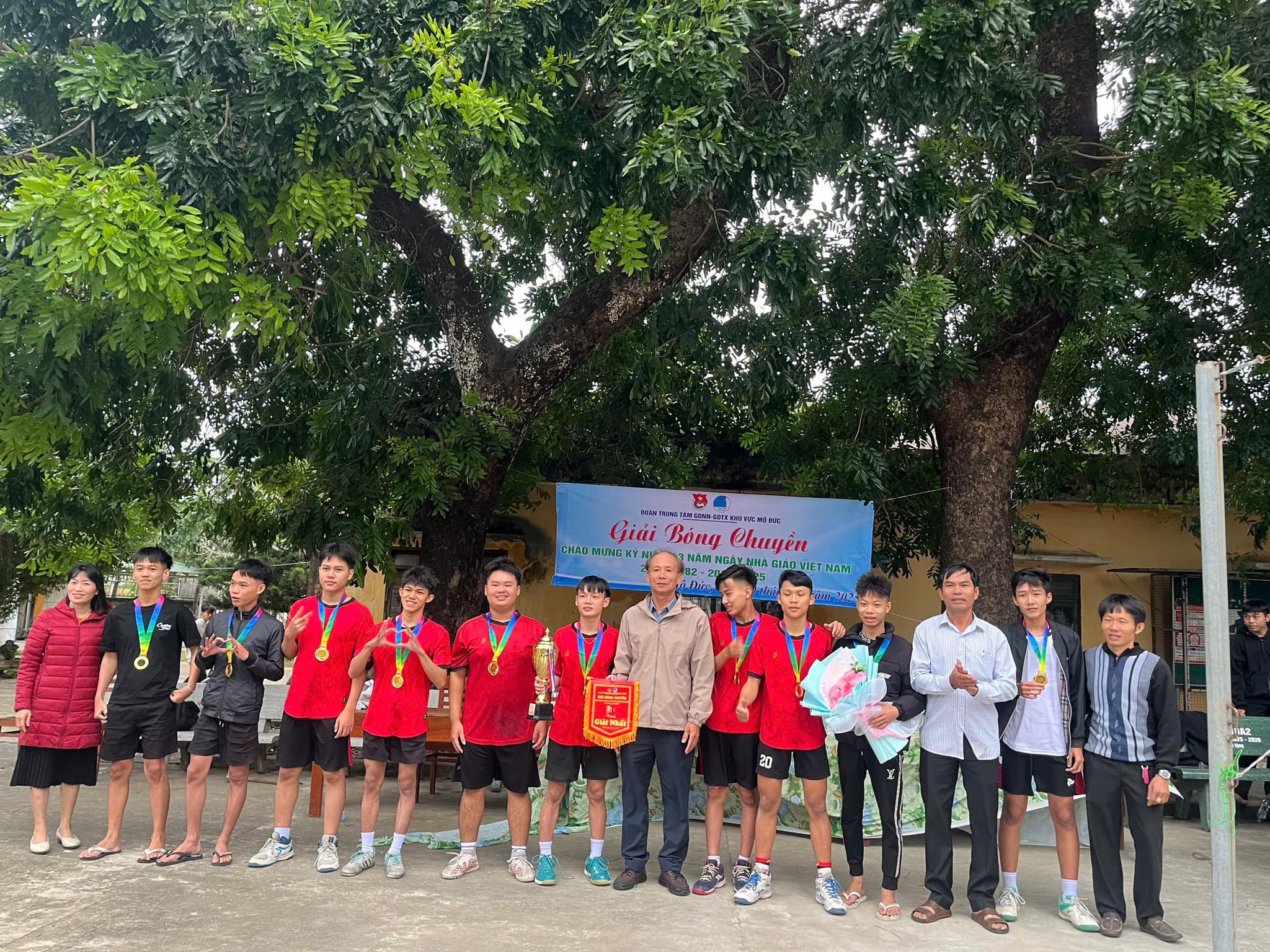 Hòa chung không khí hân hoan của cả nước hướng về Ngày Nhà giáo Việt Nam 20/11, trong các ngày 12, 15 và 28/11, Đoàn Trung tâm GDNN–GDTX khu vực Mộ Đức đã tổ chức Giải bóng chuyền truyền thống nam giữa các khối lớp. Giải đấu năm nay quy tụ 12 đội bóng đến từ 12 chi đoàn, tạo nên một sân chơi thể thao lành mạnh, đầy màu sắc và nhiệt huyết của tuổi trẻ.