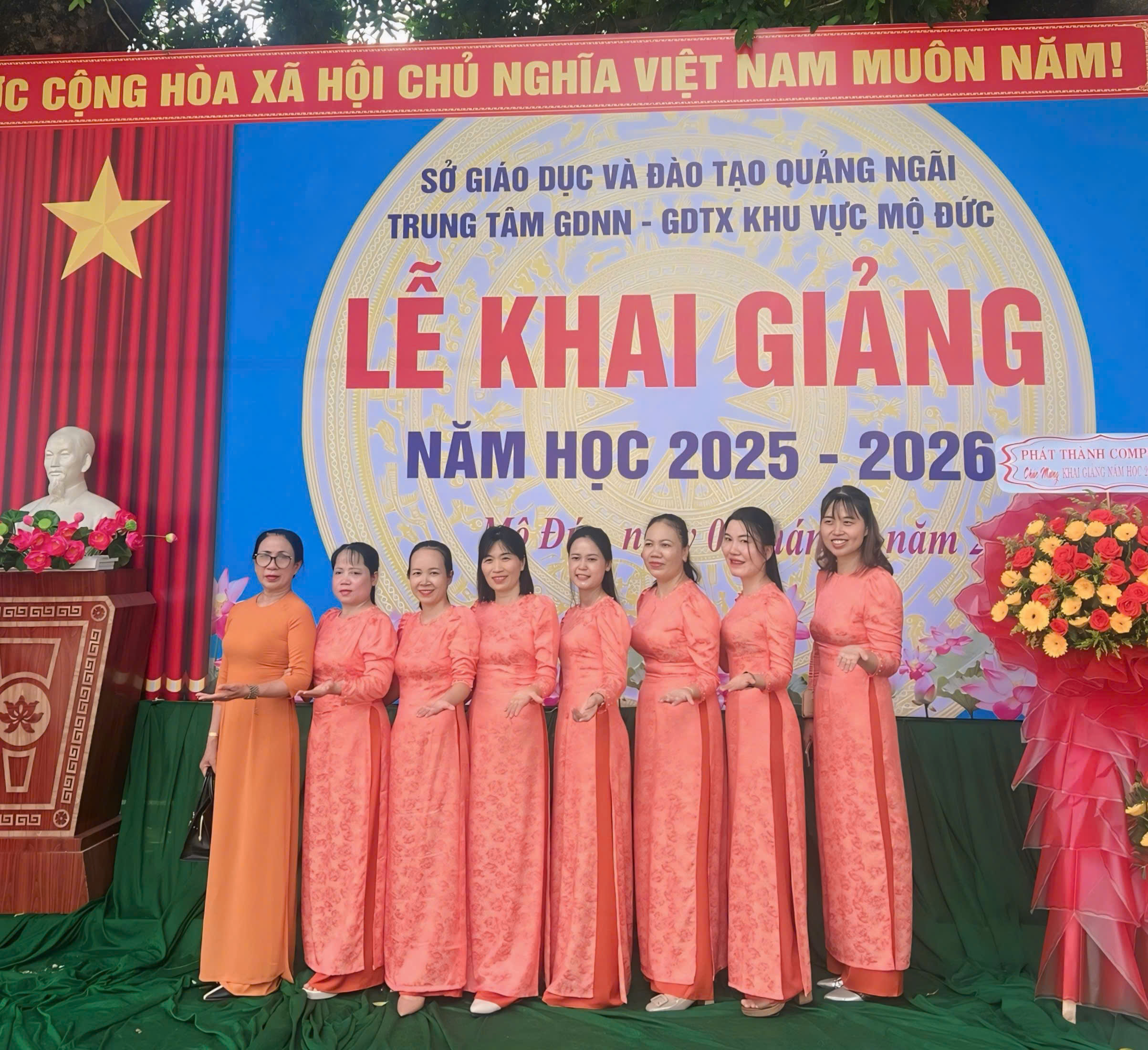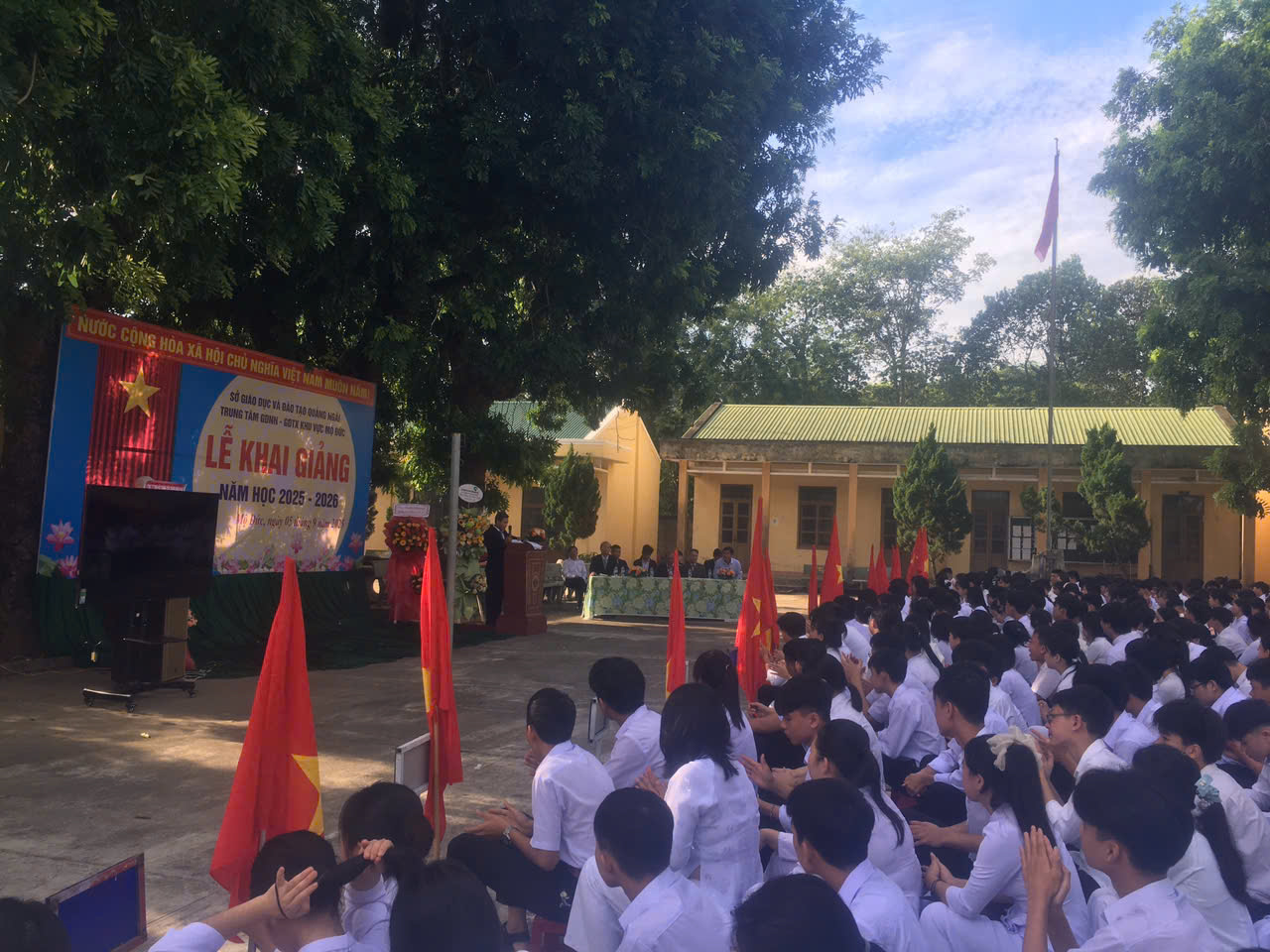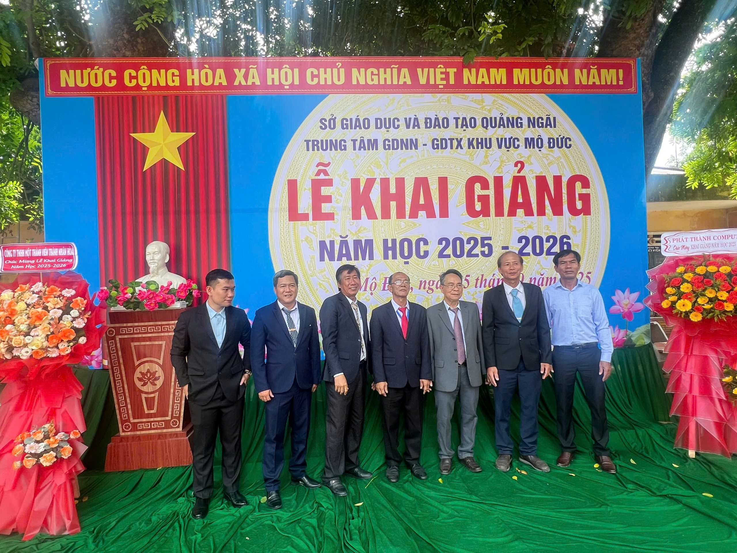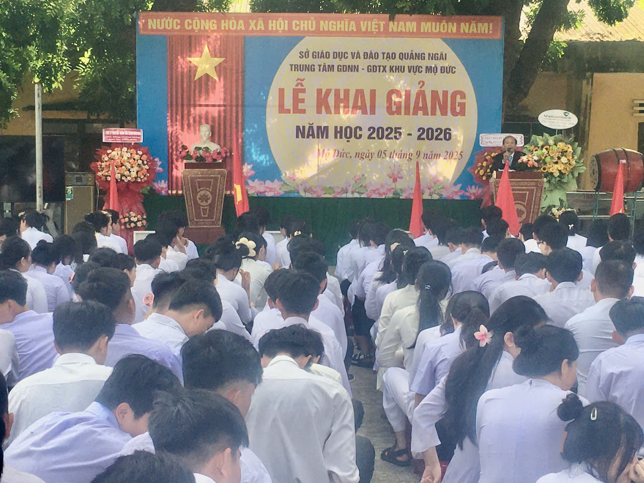 Sáng nay, ngày 5 tháng 9 năm 2025, tại Trung tâm GDNN – GDTX khu vực Mộ Đức lễ khai giảng năm học mới đã chính thức diễn ra trong không khí trang trọng và xúc động. Lần đầu tiên trong lịch sử giáo dục Việt Nam, lễ khai giảng năm học 2025–2026 được truyền hình trực tiếp trên kênh VTV1 và kết nối trực tuyến tới hàng triệu học sinh trên cả nước, đánh dấu một bước chuyển mình mạnh mẽ trong cách thức tổ chức sự kiện giáo dục quan trọng bậc nhất trong năm.